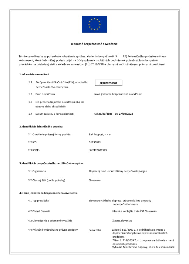 «РАЛСП» также является национальным железнодорожным грузовым перевозчиком с 10/2020, включая перевозку опасных грузов RID «РИД», и является членом ассоциации AVV «АВВ». Ещё одним направлением деятельности «РАЛСП» является предоставление услуг на подъездных путях, значит Эксплуатация подъездного железнодорожного транспорта и эксплуатация железнодорожной инфраструктуры. Оказание технологической и коммерческой поддержки отправляющимся или заканчивающимся подъездным поездам и перевалке вагонов на подъездных путях.
